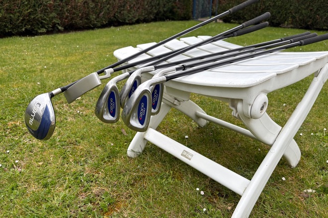 Set de 6 clubs de golf HOMME, très peu utilisé, de marque OZONE Bleu, parfait pour un débutant